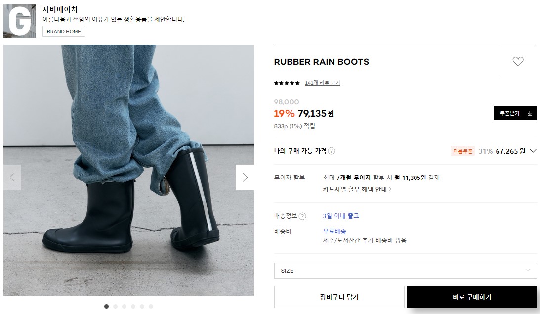 레인부츠 중에서 제일 유명하죠? 그래서 그런지 다른 레인부츠 브랜드에 비해 가격도 비싼 편인 거 같아요