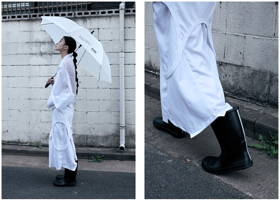 단점 : 짧을수록 빗물 커버가 안됨 / 니삭스를 신지 않으면 종아리가 쓸림