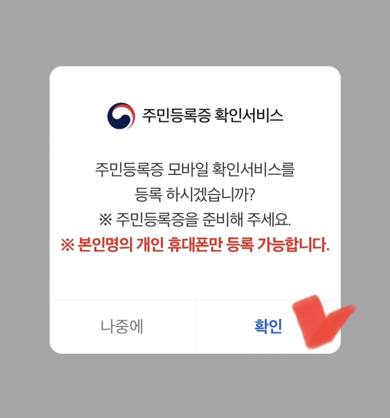 4. 주민등록증 확인서비스가 뜨면 확인을 누른다.
