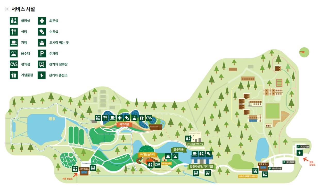 ▶ 서문쪽이 에코리움과 더 가깝지만 걸으면서 산책하며 입장하기 위한다면 정문 쪽에 주차 추천