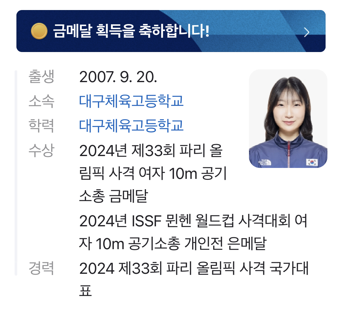 2024년 ISSF 뮌헨 월드컵 사격대회 여자10m에서도 은메달을 딴 수상경력이 있네요!