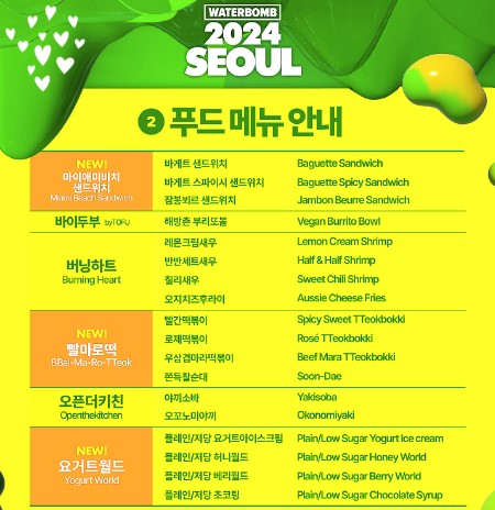 워터밤 푸드 메뉴