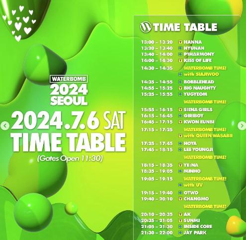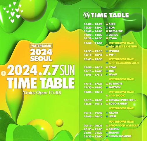 2024년 워터밤 서울 라인업